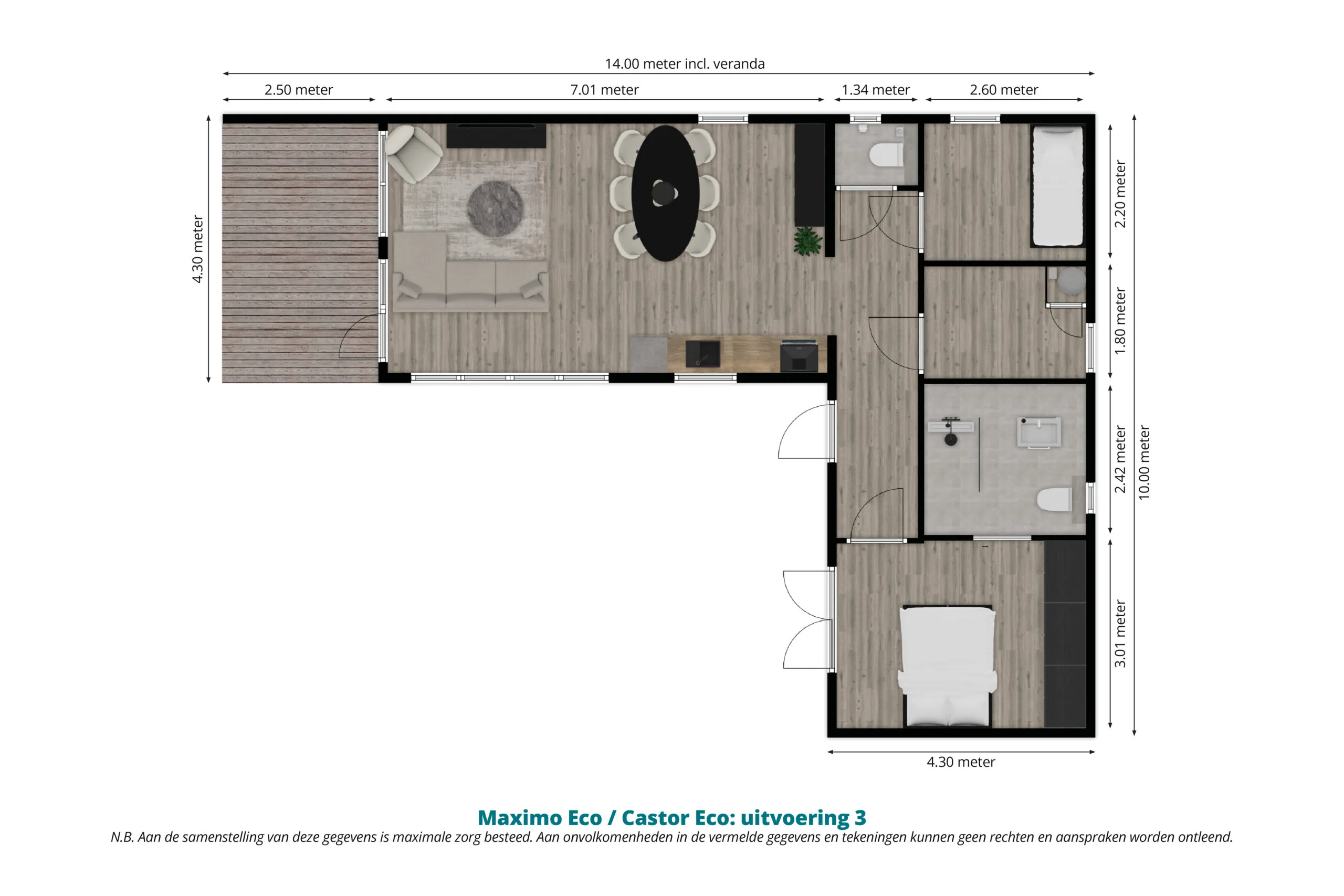 Afmetingen (lxb): 10.00 x 4.20 + 4.20 x 3.10 meter incl. veranda