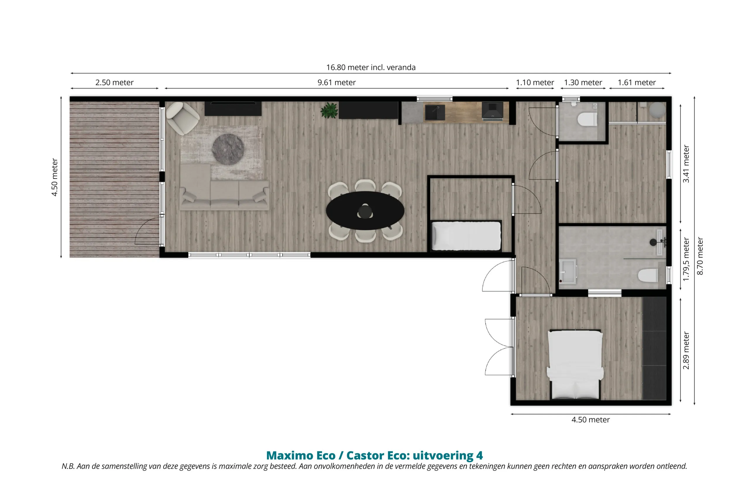 Afmetingen (lxb): 16.80 x 4.50 + 4.50 x 4.20 meter incl. veranda