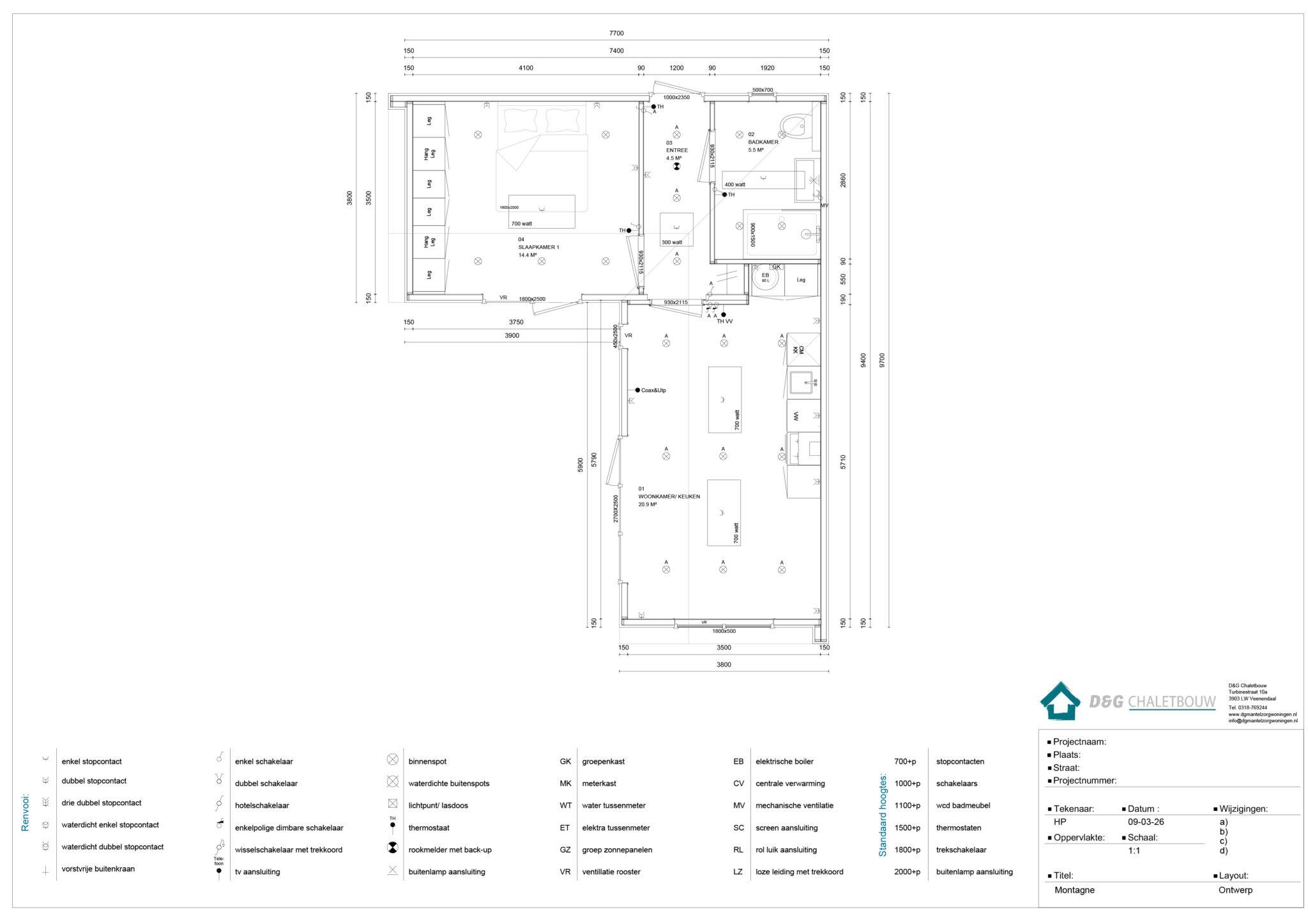 Afmetingen (lxb): 9.70 x 3.80 + 3.80 x 3.40 meter