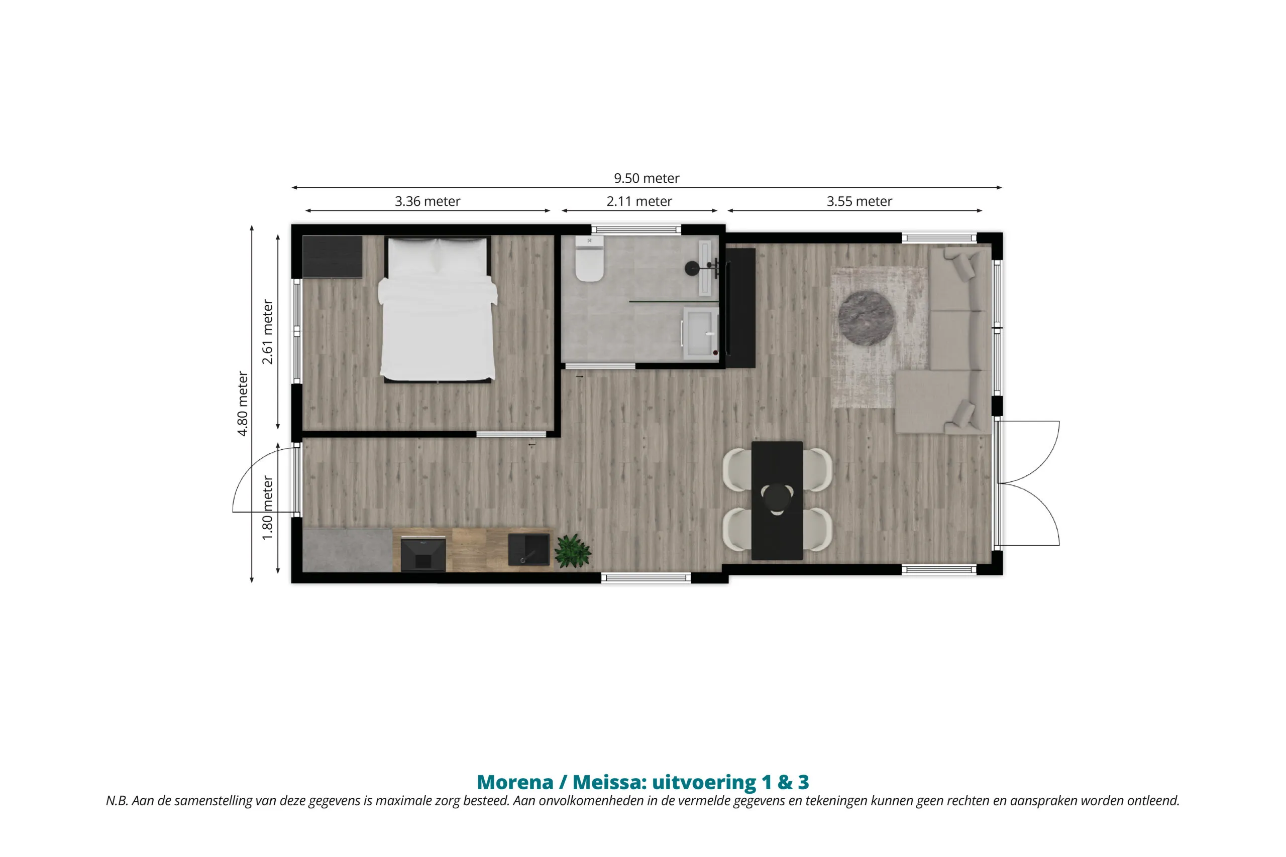 Afmetingen (lxb): 9.50 x 4.80 meter