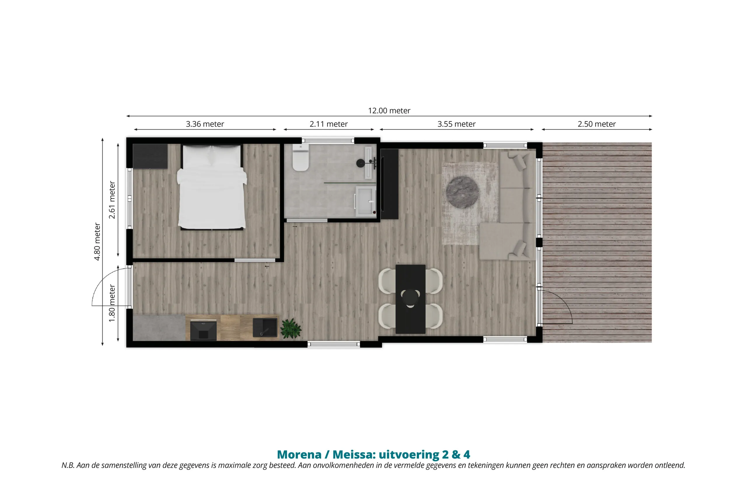 Afmetingen (lxb): 12.00 x 4.80 meter incl. veranda