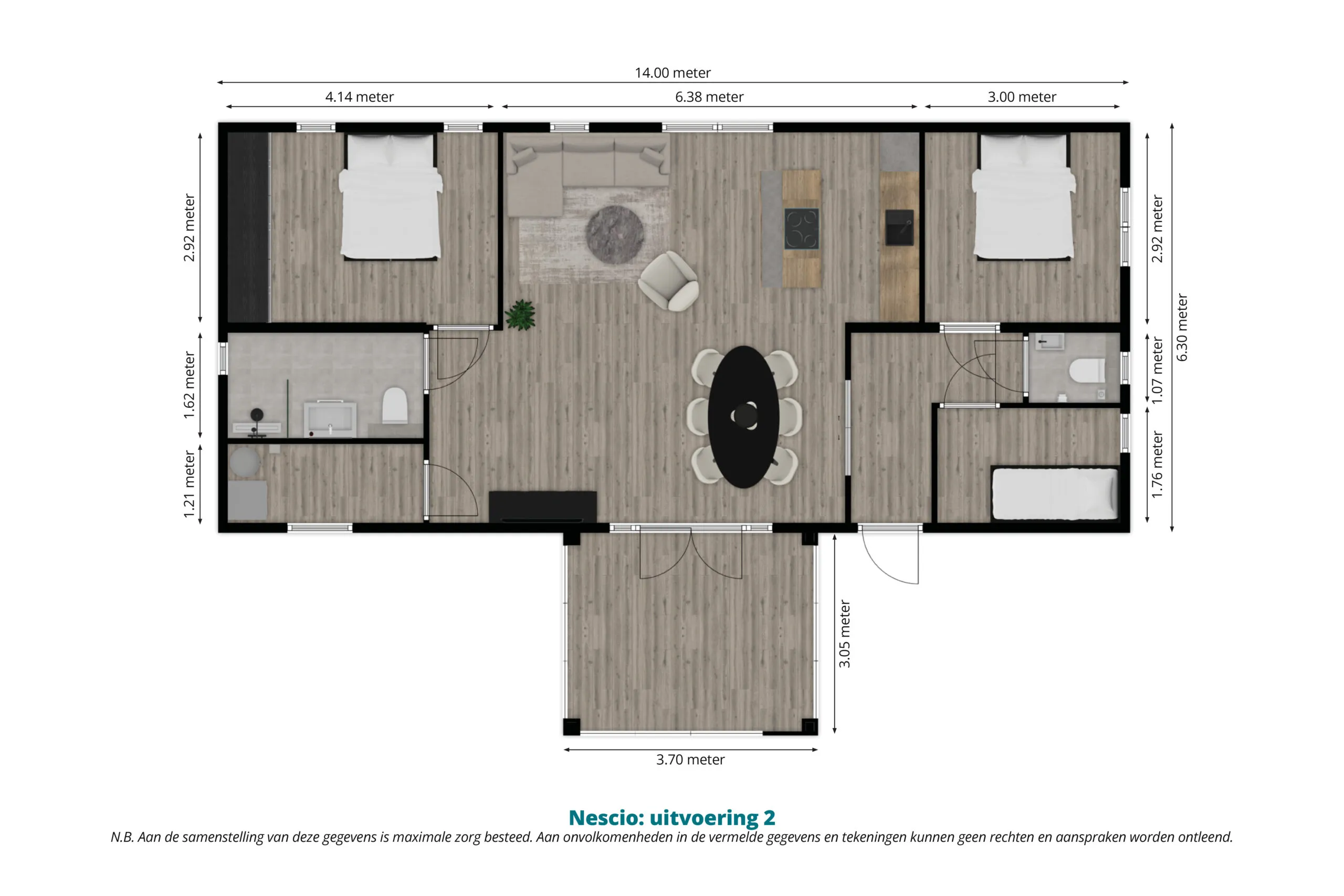 Afmetingen (lxb): 14.00 x 6.30 meter + serre van 3.70 x 3.05 meter